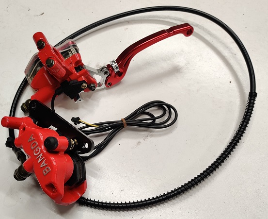 Täydellinen etujarrusarja. Väri: punainen. Sarja ei sisällä jarrulevyä.