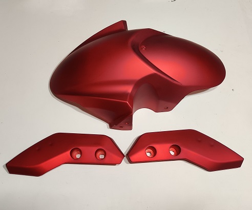 Etulokasuoja ja sivulevyt vasen ja oikea. Punainen