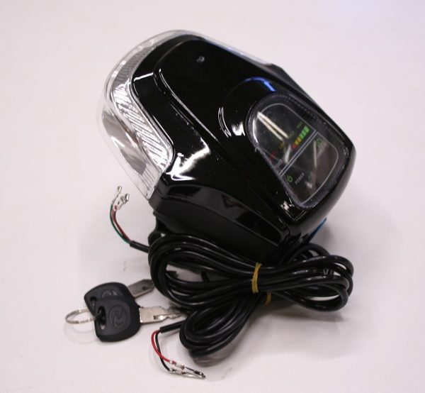 Kontio Kruiser ja Trike mittaristo. Mittaristo sisältää lisäksi etulampun, virtalukon avaimineen ja mittariston johdot jotka tulevat ohjainyksikköön kiinni