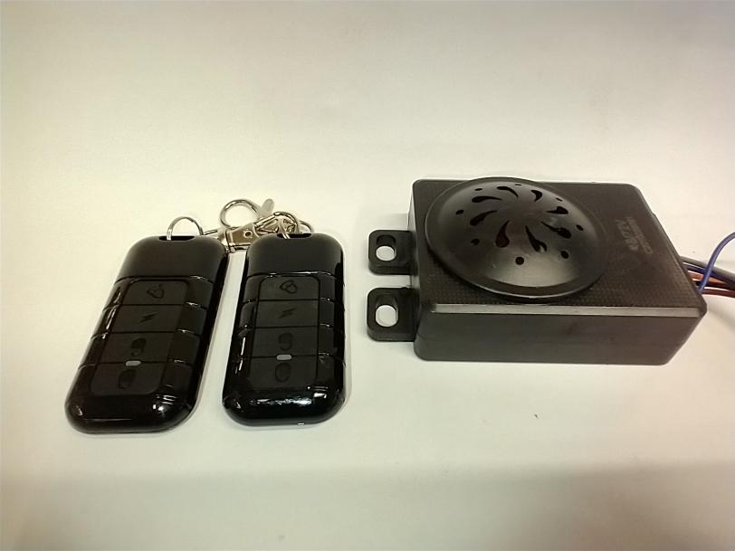 Hälytin ja kauko-ohjain. Sisältää 2kpl kauko-ohjaimia laitteeseen. Hälytin toimii myös äänimerkin äänilähteenä.