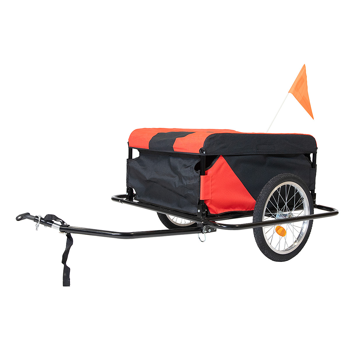 Kuomullinen malli suojaa tavaroita sateelta ja lialta sekä myös pienemmät tavarat pysyvät turvallisesti matkassa. Kuomun materiaalina kestävä ja vedenpitävä 600D Polyesterikangas.