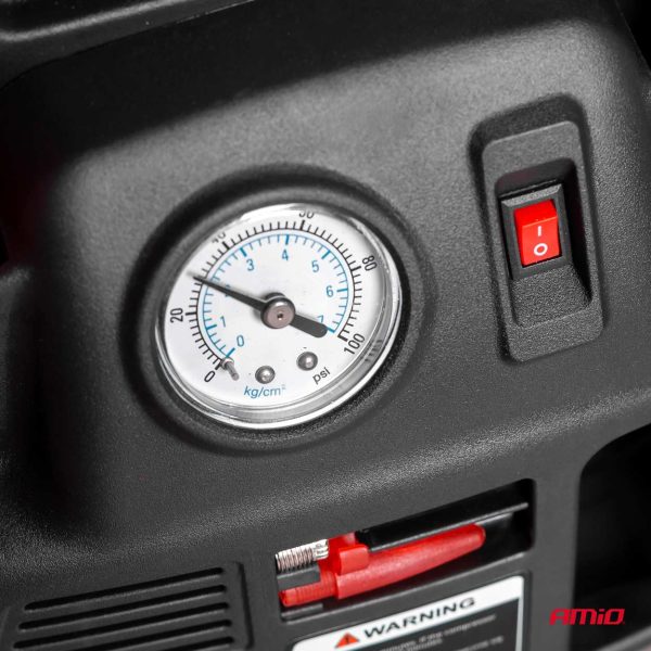-Car compressor with pressure gauge
