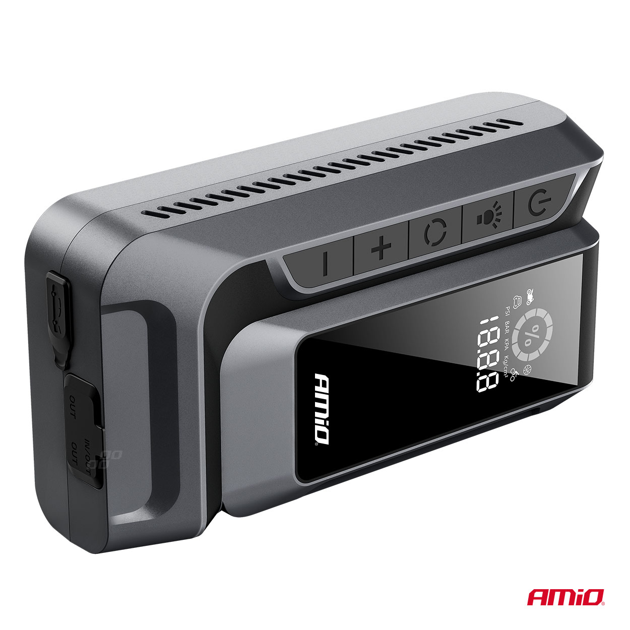 Apukäynnistin Amio 4in1 12Ah on ammattimainen monitoimilaite, joka yhdistää apukäynnistimen, virtapankin, ilmakompressorin ja LED-taskulampun toiminnot. Suuren akkukapasiteetin ja korkean käynnistysvirran ansiosta laite toimii luotettavasti vaativimmissakin olosuhteissa, niin ammattikäytössä kuin yksityisautoilijoiden arjessa.