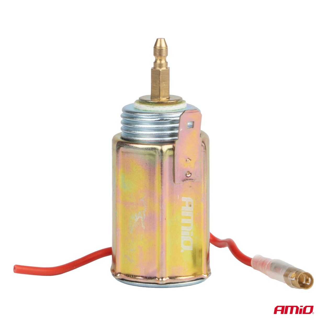 - The +12V power supply should be connected to the red wire, while the ground (-) should be connected under the tab in the housing.