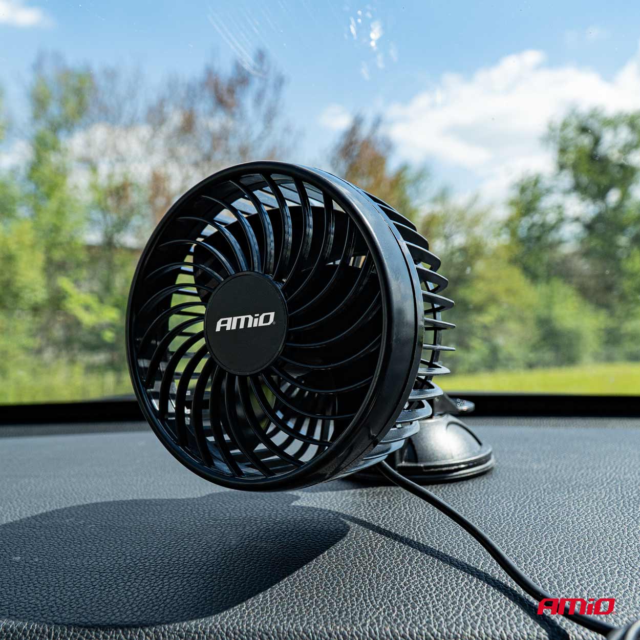 The robust suction cup allows the fan to be mounted on the windscreen or in the passenger compartment.