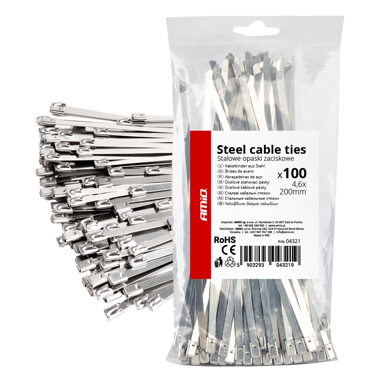 AMiO's 4.6 x 200mm stainless steel professional metal zip ties are a reliable solution for applications requiring superior strength and resistance to external conditions. Designed for industrial, automotive and construction applications, they are ideal where durability and secure fastening is important.