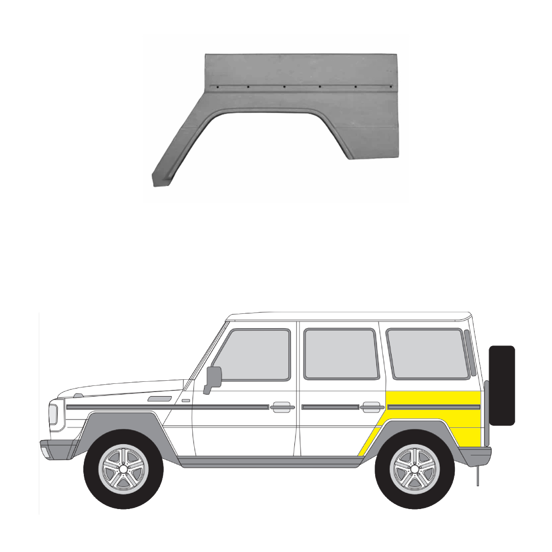 Takalokasuoja vasen MB G-Sarja (W460/W461/W463) 1979-2002 (3-ovisiin)