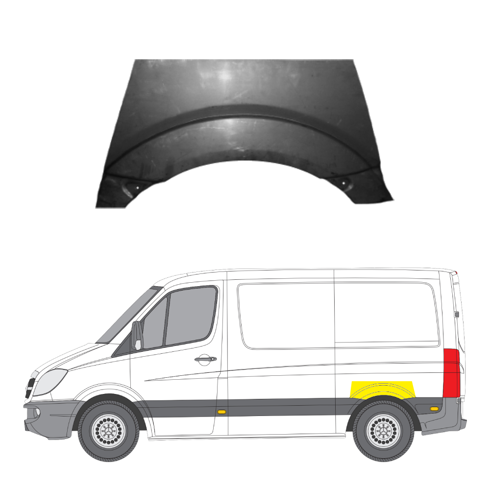 Takalokasuojan kaari vasen MB/VW 2005-2018