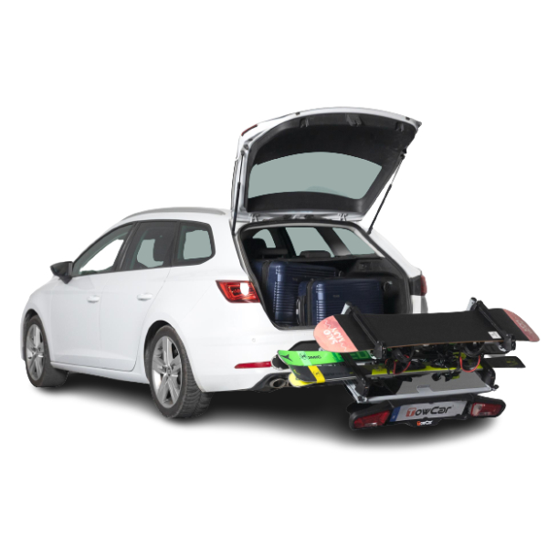 Vetokoukkuun kiinnitettävä TowCar Aneto suksi/lumilautateline on kokoontaitettava, helppokäyttöinen ja suunniteltu kuljettamaan talviurheiluvarusteesi turvallisesti perille – ei muuta kuin tavarat autoon ja suunta kohti rinteitä!