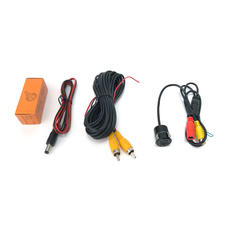 NTSC-peruutuskamera 170° asteen laajakulmalinssillä ja automaattisella IR LEDillä. Kameran asennusaukon koko vain 18.5 mm!