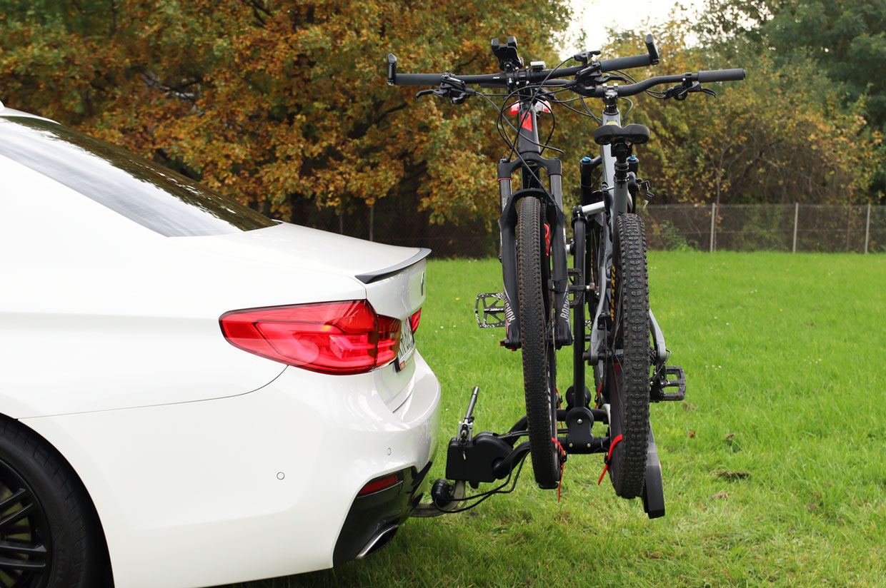 Very convenient system of mounting the bikes on the carrier – just detach the mounts, put the bikes through, secure with a branch with a key and you're done