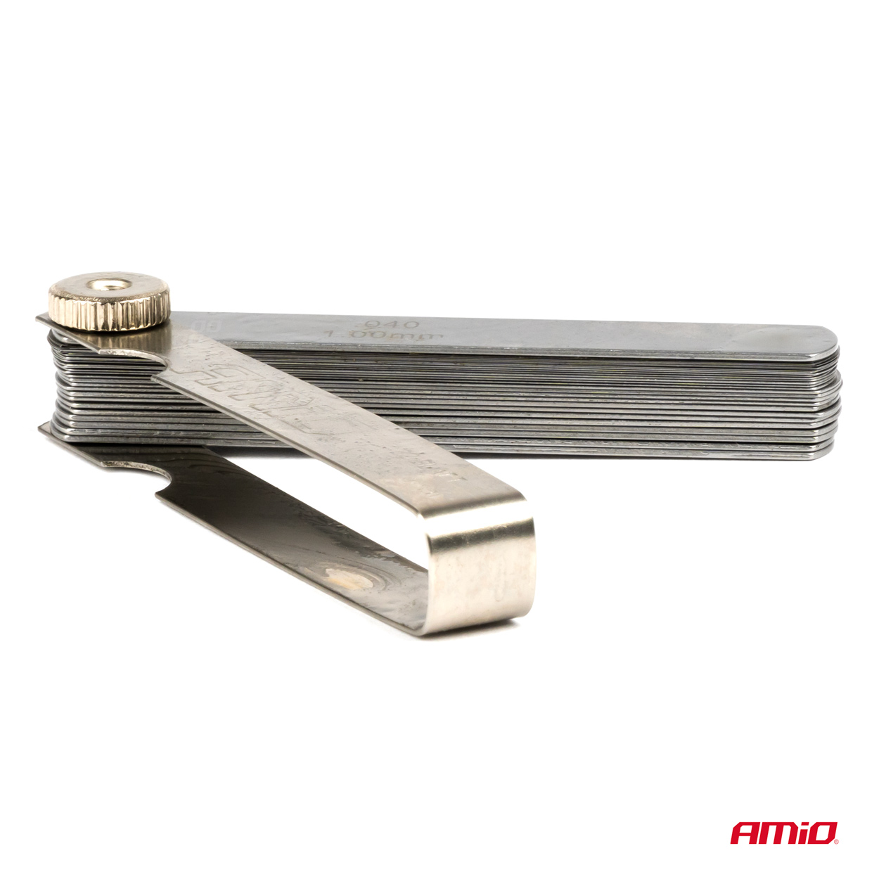 The leaf gap gauge is designed for precise setting of gap widths and clearances between adjacent surfaces, e.g. between electrical contacts. The length of the measuring element is 96 mm. The gap gauge is made of hardened spring steel. It will find its use in automotive, craft and industrial applications.