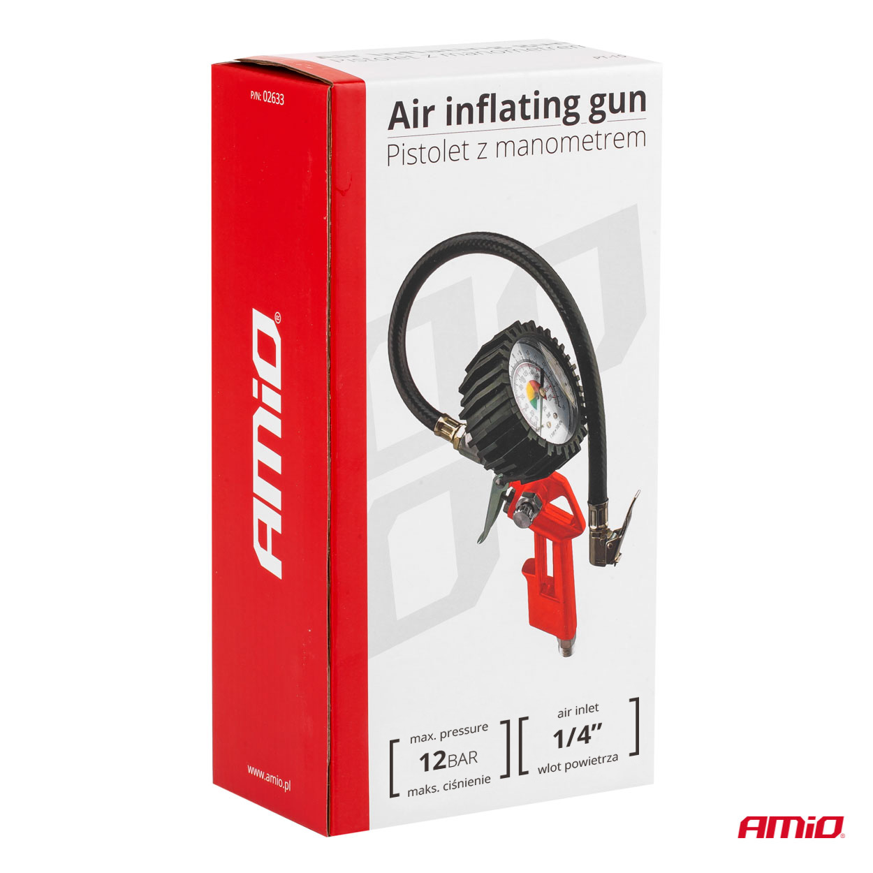 The gun can be used to inflate tyres and check the pressure in car wheels, as well as motorbikes, scooters and bicycles.