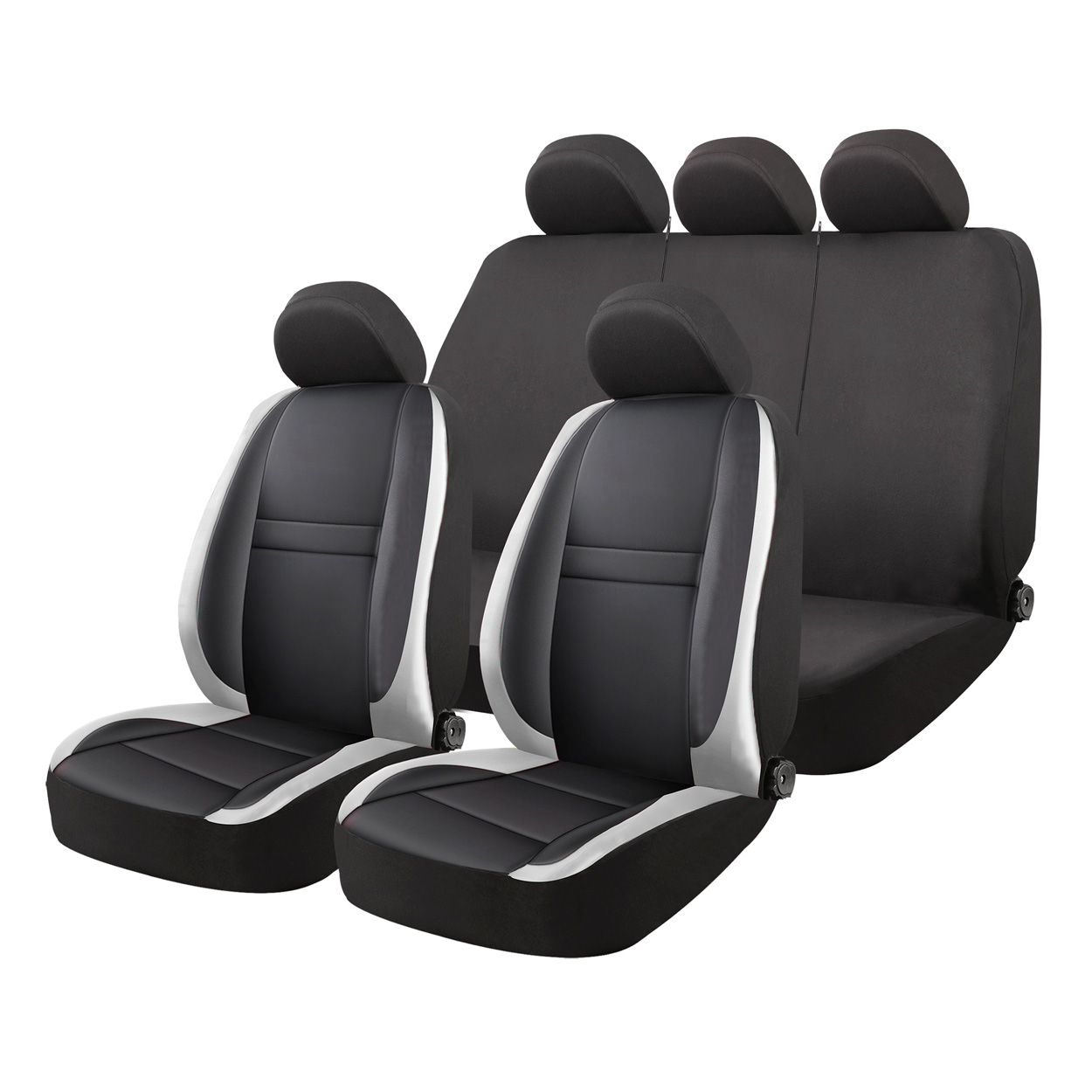 9-osainen sarja sisältää suojat kahdelle etuistuimelle, jaettavalle takapenkille sekä niskatukisuojat. Yleismalli sopii useimpiin automalleihin.