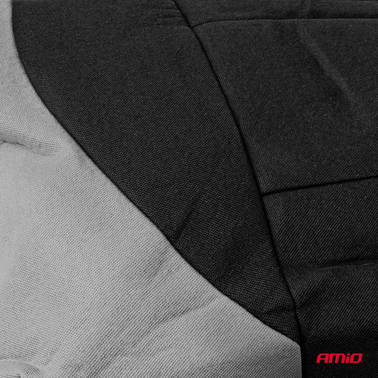 Täydellinen istuinsuojasarja auton etu- ja takapenkille. Valmistettu kestävästä ja laadukkaasta materiaalista, jolla on erinomainen kulutus- ja tahrankestävyys. Tyylikäs harmaa-musta tikkauskuvio.
