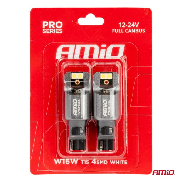 LED CANBUS PRO series T15 W16W 4×3030 SMD White 12/24V FULL CANBUS AMIO-03581